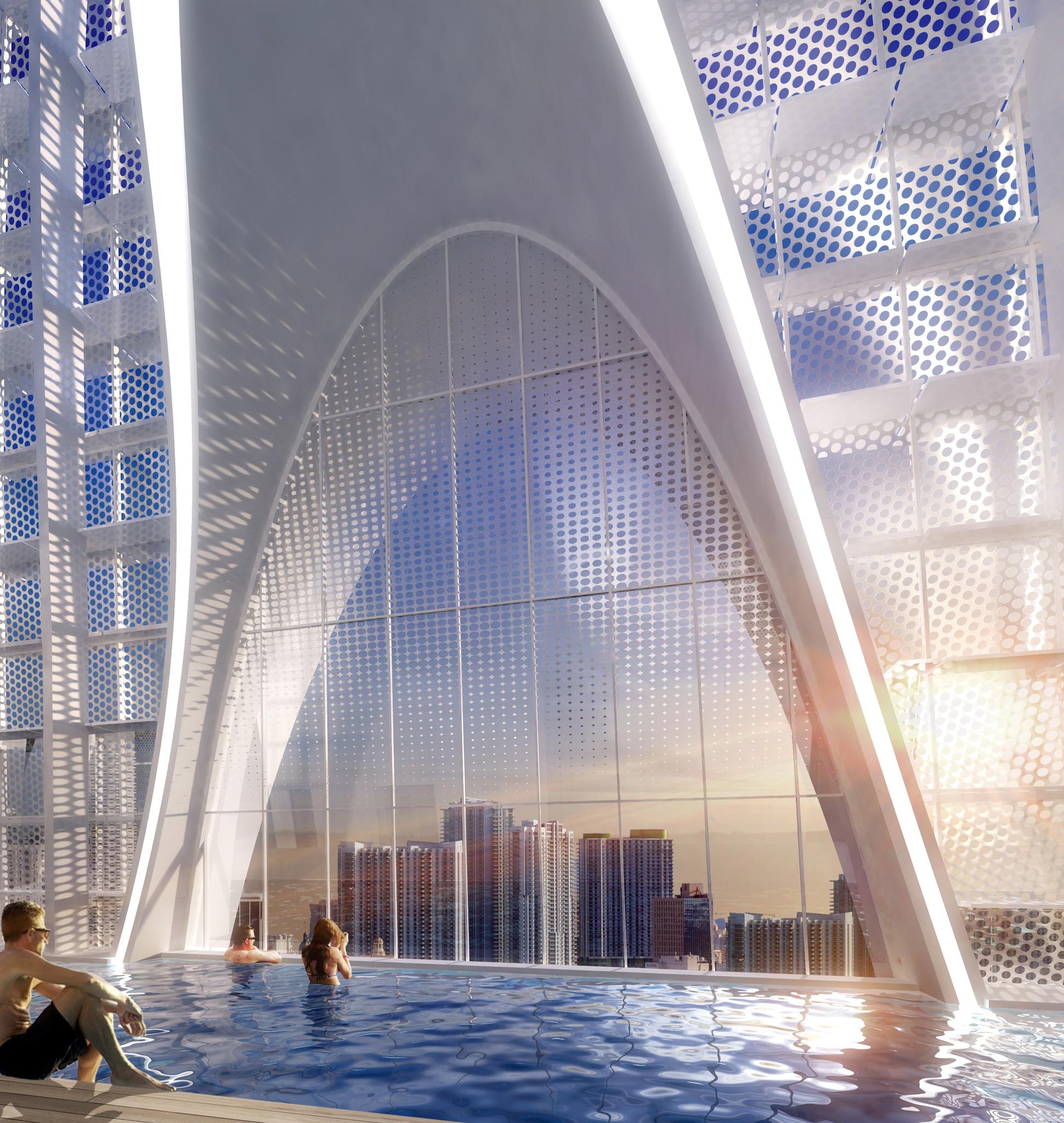 Inside, the building boasts an array of world-class amenities and luxurious features, including high-speed elevators, a state-of-the-art fitness center, a spa, a swimming pool, and a sky lounge with stunning panoramic views. The tower also houses a variety of retail spaces, restaurants, and entertainment venues, making it a destination for both residents and visitors.